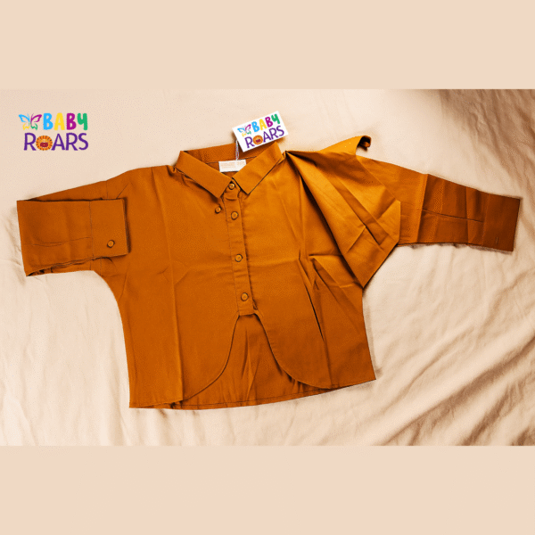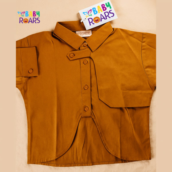 A smart and stylish mustard shirt top with flap detailing, made for trendy baby girls.